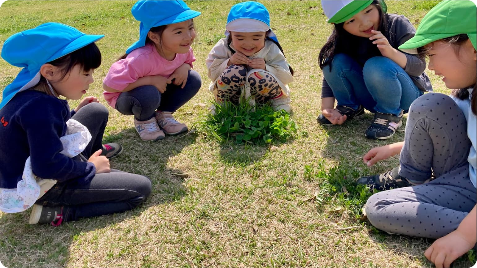私達は、幸せな人生を歩んでいくための"人としての根っこ"を育みます。教育目標である「生活を自分でつくり、明日を創れる子」とは、変化する時代でも揺らぐことのない「自らの人生を 自らが決めていく力」を育むことを表しています。 そのために、私たちは "子どもたちが子どもたちらしく存在し、生き生きとした園生活"を送るために存在します。