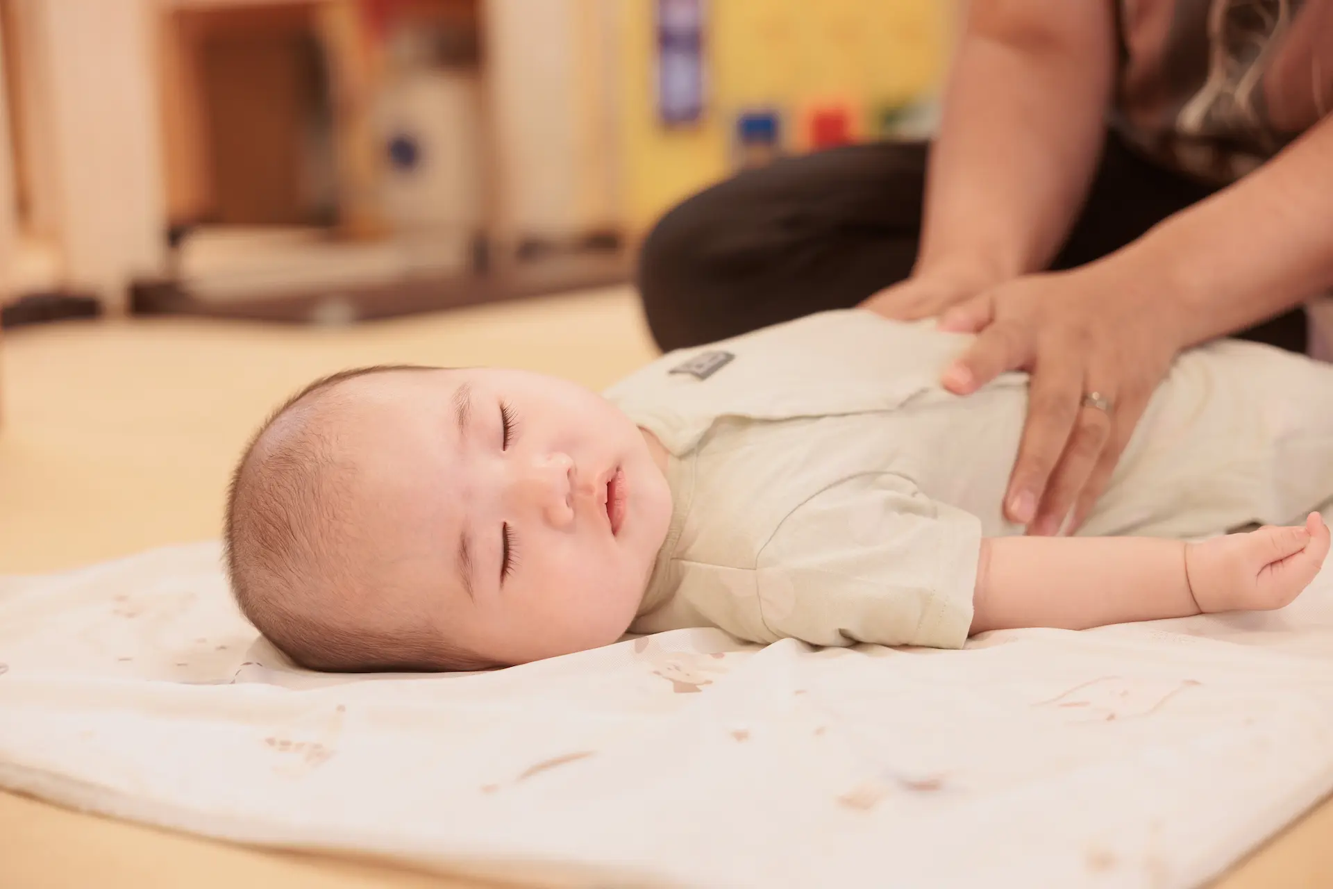 | 14:00〜14:30 | 少しずつ目を覚ます子ども達。保育者は優しく声をかけながら、起きる準備を手伝います。眠たい気持ちに寄り添いながら、穏やかに午後のスタートです。 |